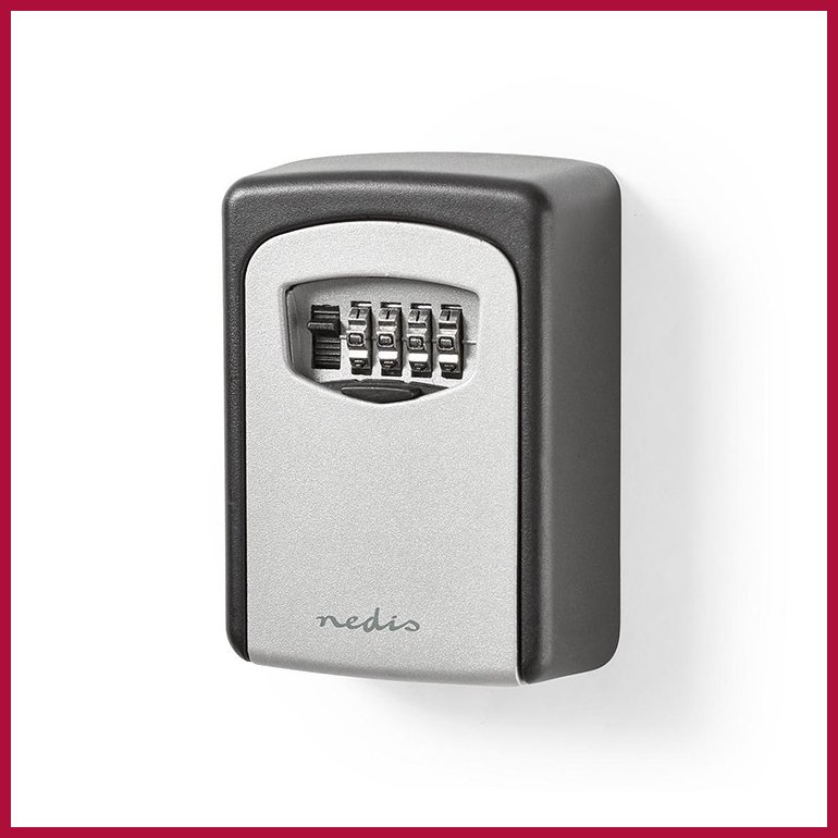 Nedis avainsäilö numerolukolla. Kestävä alumiinirakenne, säädettävä 4-numeroinen koodi. Sopii sisä- ja ulkokäyttöön, helppo seinäkiinnitys.
