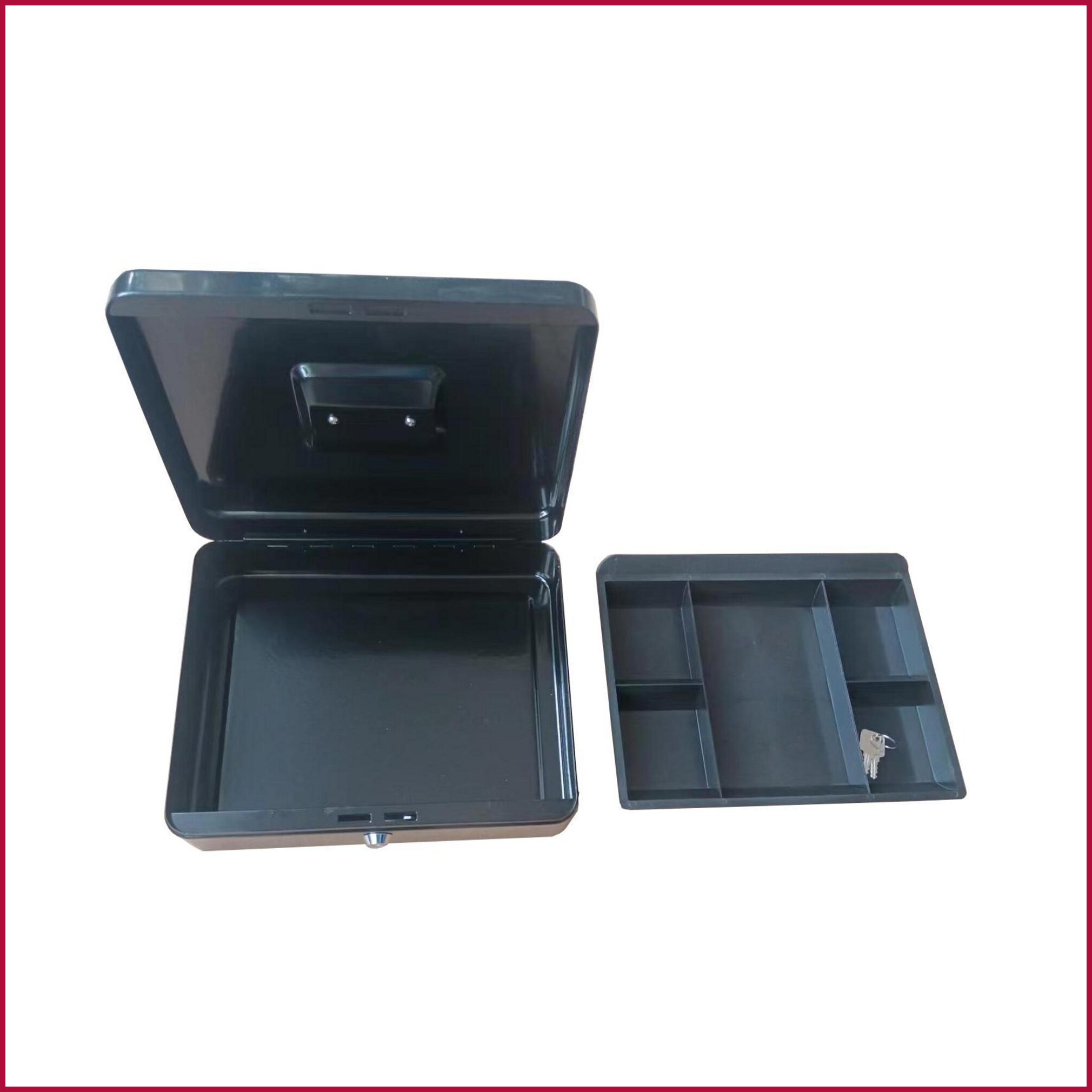 Iso kassalipas musta kolikko- ja setelilokeroilla on käytännöllinen ja turvallinen ratkaisu käteisen säilytykseen. Tilava rahalipas sisältää 5 setelilokeroa ja 5 kolikkolokeroa, jotka pitävät rahat selkeästi järjestyksessä. Kestävä 1 mm metallirakenne ja sylinterilukko tarjoavat luotettavan suojan päivittäiseen käyttöön. Kompaktista mutta tilavasta koosta (9 x 30 x 20 cm) huolimatta kassalipas sopii erinomaisesti myyntipisteisiin, tapahtumiin ja yrityskäyttöön, joissa tarvitaan tehokasta rahankäsittelyä.