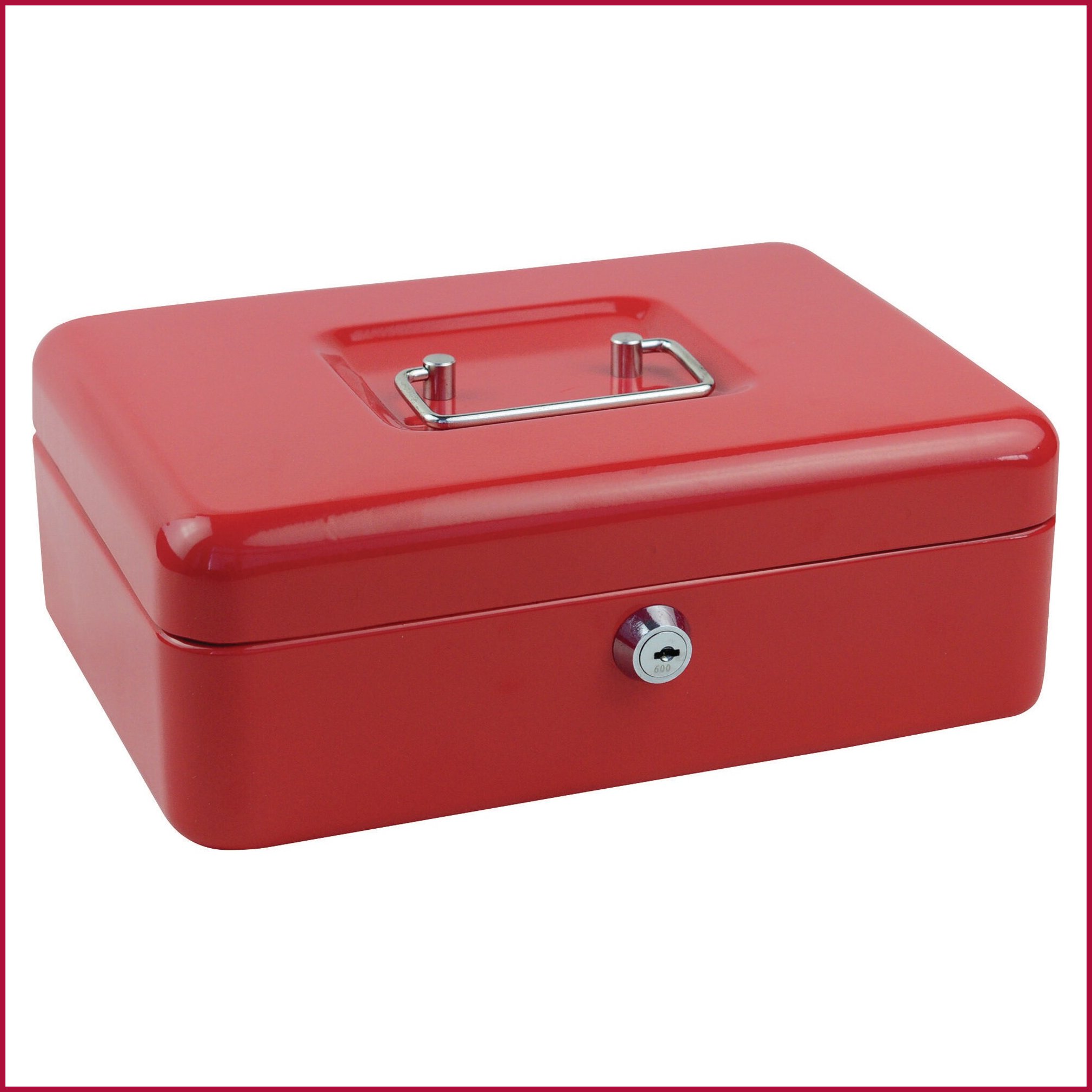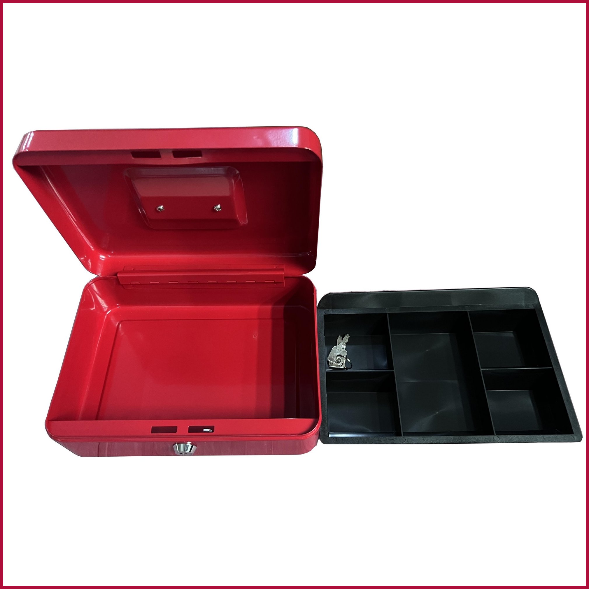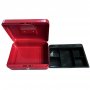 Kassalipas punainen kolikkolokerikolla on klassinen ja turvallinen ratkaisu käteisen säilytykseen. Keskikokoinen metallinen rahalipas sisältää 5-osaisen kolikkolokerikon, joka pitää rahat järjestyksessä ja helposti laskettavina. Avainlukko suojaa sisällön, ja kestävä 1 mm teräsrakenne takaa pitkäikäisen käytön. Kompakti koko (9 x 25 x 18 cm) tekee kassalippaasta erinomaisen valinnan toimistoon, myyntipisteeseen tai tapahtumiin, joissa tarvitaan luotettava ja selkeä rahankäsittelyratkaisu.