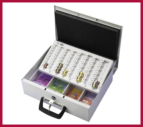 Wedo Universal kassalipas kolikko- ja setelilokeroilla on kestävä ja turvallinen ratkaisu käteisen säilytykseen. Polttomaalatusta teräksestä valmistettu lukittava kassalipas sisältää liukuvan kolikkoalustan, jossa on omat paikat kaikille eurokolikoille sekä vaahtomuovitausta, joka pitää kolikot paikoillaan. Lisäksi lippaassa on neljä setelilokeroa, kantokahva ja 2 avainta. Tilava koko (36 x 28 x 12 cm) tekee kassalippaasta erinomaisen valinnan myyntipisteisiin, tapahtumiin ja yrityskäyttöön, joissa tarvitaan luotettava ja selkeä rahankäsittelyratkaisu.